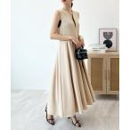 ワンピース スクエアヘンリーネック ノースリーブロングワンピース