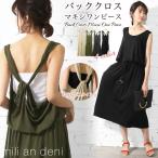 レディース ワンピース 膝丈 バッククロス マキシ ロング ノースリーブ (郵3) ポイント消化