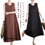 綿 レディース 春 薄手 ワンピース コットン Aライン ロングワンピース 夏 袖なし ワンピース 綿麻 ノースリーブ 涼しい 大きいサイズ 無地 シ