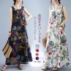 ワンピース レディース ロング ワンピース ノースリーブ ロング ワンピ 体型カバー ゆったり ゆるっとワンピース シンプル 綿麻調 ロングワンピ 花柄 かわいい