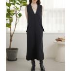 ワンピース Vネック ダブルポケット ノースリーブ ロング ワンピース