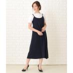 ワンピース ノースリーブ 袖なし ジャンパースカート ジャンスカ vネック ロング丈 マキシ丈 スリット入れ ポケット 無地 重ね着風 春秋夏 上品 おしゃれ