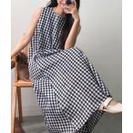 ワンピース ノースリーブチェック柄ロングワンピース