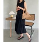 ワンピース ノースリーブ タックワンピース レディース カジュアル ロングワンピース ミモレ丈 小柄 大人可愛い 無地 フレアワンピース aラインワンピース