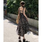 ワンピース ノースリーブ 花柄シャーリングロングキャミワンピース