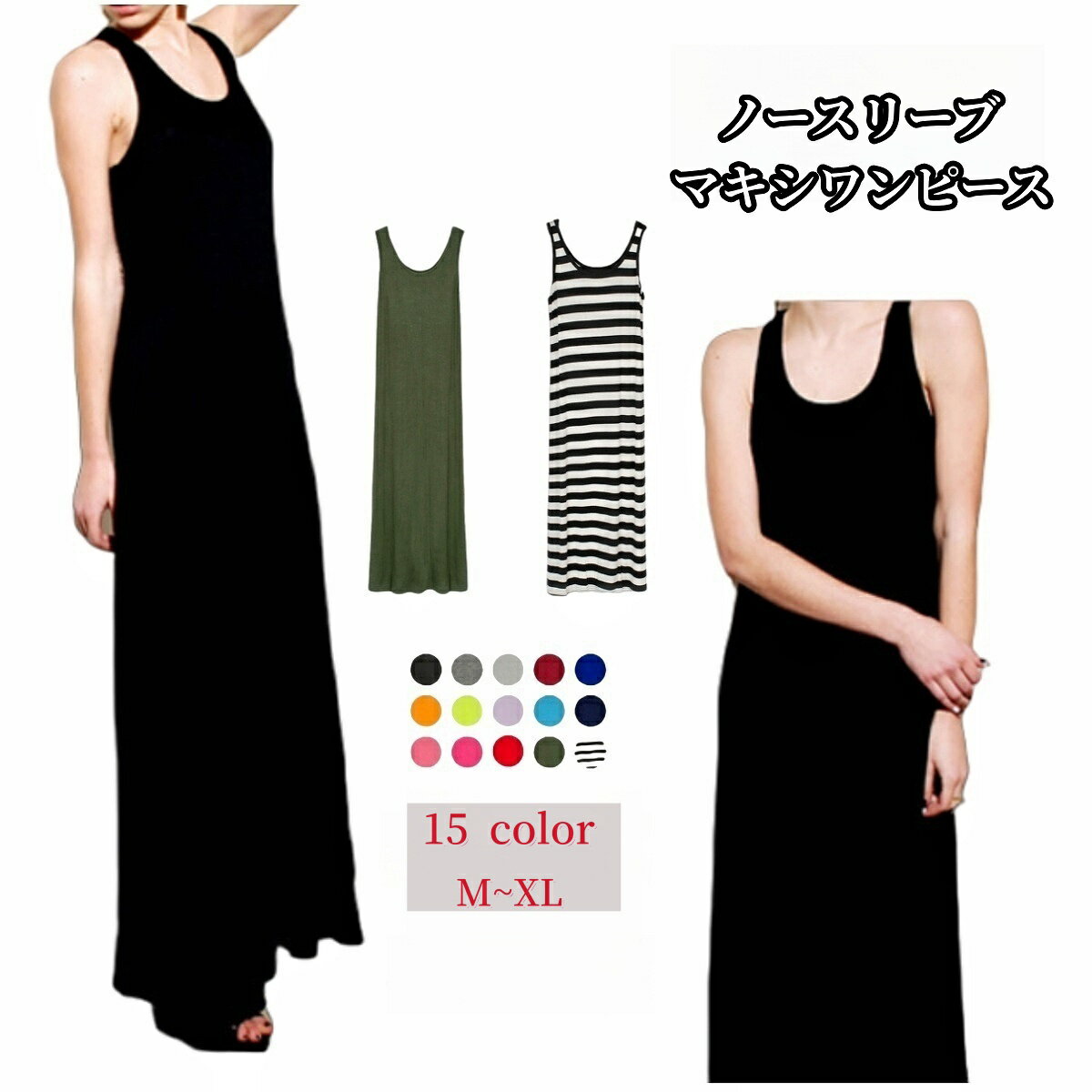 ロング ワンピース ワンピース マキシ ノースリーブ