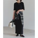 ワンピース 「TALL/2Tサイズあり」カットリブハーフスリーブワンピース