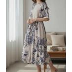 セルフォード CELFORD 石井美保コラボ エンブロイダリーワンピース ロング 刺繍 半袖 パフスリーブ グレージュ