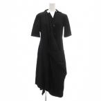 ヨウジヤマモトノアール ドレープ ワンピース ウールギャバジン アシンメトリー ロング 半袖 1 黒 ブラック /UO ■GY42 レディース