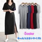fw79#ロングワンピース 日本国内当日発送 2color ワンピース レディース 伸縮性あり 半袖 無地 大きいサイズ マキシワンピース 体型カバー ゆったり