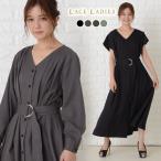 ロングワンピース 長袖 半袖 シャツワンピース ロング丈 Vネック カジュアル ベルト付き Aライン シンプル ワンピース 袖あり 20代 30代