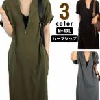 半袖 レディース ハーフジップ ゆったり ワンピース 大きいサイズ シンプル 夏 フレンチ袖 ワンピ 体型カバー マキシ丈 ロングワンピース ロング