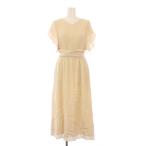 ラグナムーン LagunaMoon フレアワンピース マキシ ロング 半袖 Vネック ワンカラー レース S ベージュ /BB レディース
