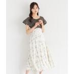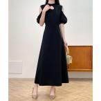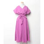 ワンピース Wマットサテンピンタックブザムフレンチスリーブワンピース