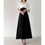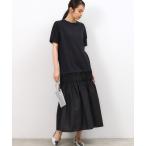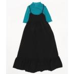 ワンピース レイヤード風ドッキングセミフレアワンピース(薄手、裏地なし)