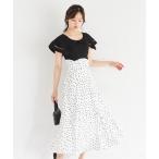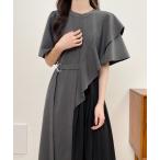 ワンピース ポンチ半袖プリーツ切替ワンピース