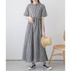 ワンピース レディース 40代 50代 半袖 チェック柄 綿麻ワンピース ゆったり 体型カバー 韓国風 デザイン感 切り替えワンピース 丸首 カジュアル 大人 お出かけ