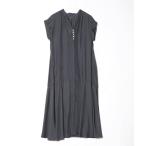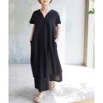 ルギヴァ ロングワンピース 半袖 マキシ丈ワンピース ワイドライン レースアップ 色無地 ワンピ LUGIVA TOKYO HERS【中】 レディース 春/秋/冬 カーキ/ブラウン/ブラック \定価から50%OFF/