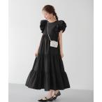 マルチサイズ ワンピース 「半袖」パフスリーブロングワンピース