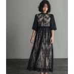 ドレス バイカラーエンブロイダリードレス