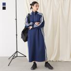 ロングワンピース 長袖 レディース ワンピース トラックジャケット ロング丈 ハーフジップ 配色ライン ジャージワンピ スタンドネック「メール便不可」「30」