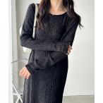 ワンピース ロングワンピース 長袖 レディース ニットワンピース ペチコート Aライン レイヤード 重ね着 セットアイテム 返品交換不可 「メール便不可」「20」
