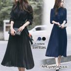 プリーツワンピース レディース 長袖 春物 ロングワンピース ミモレ丈ワンピース 無地 通勤 40代50代 フレアワンピース aラインワンピース お呼ばれ 卒業式