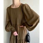 ワンピース 「mily bilet」1枚で大人レディ。フレアスリーブ プリーツブラウス ドッキングワンピース(長袖)