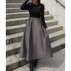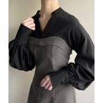 ワンピース 「mily bilet」大人シック。チョーカーデザインレイヤード風キャンディースリーブドッキングナローワンピース(長袖)