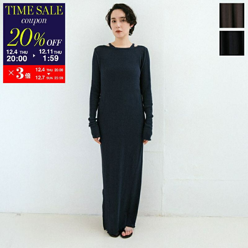 \10%OFFクーポン/PRODIGAL ニット ワンピース カシミヤ ロング 日本製 フリーサイズ 秋 冬 長袖 クルーネック カシミア スリット シンプル 五泉ニット カシミヤ100%クルーネックワンピース