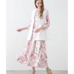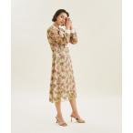 【全品対象クーポン配布中★先着100名 50%OFF★先着3,000名 25%OFF!12/4 20時開始】ワンピース ロング マキシ レディース 大きい胸専用 ジャガードフラワー プリント ウエスト シャーリング 長袖 ひざ下 オフホワイト/ブラック M/L/LL ニッセン nissen