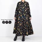 プリント ティアードロングワンピース レディース アニマル柄 うさぎ 英字 大人可愛い 長袖 ロング丈