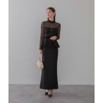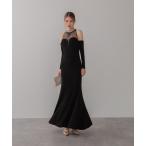 ドレス 「LEJA LUXE」シアーネックビジューデザインブラックマーメイドロングドレスワンピース美脚効果結婚式 パーティードレス 成人式 二次会 同