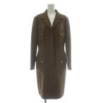 シャネル CHANEL 96A ヴィンテージ ボックスワンピース ウール 絹 シルク 長袖 ロング 比翼ボタン ココマーク 金ボタン チェーン 42