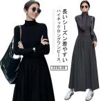 ワンピース ハイネック ワンピース ロングワンピース 長袖 マキシ丈 Aライン マキシワンピース タイト レディース フレアワンピース インナー ロン