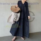 【大特価】ワンピース レディース マキシ丈 デニムワンピース ロングワンピース 長袖 大きいサイズ 着痩せ 体型カバー 通勤 OL お出かけ 春秋