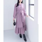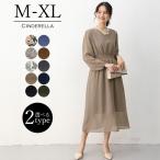 ワンピース 「低身長サイズ有」ウエストリボン裾切替長袖ロングワンピース 「スタイルアップ フリル」「再入荷」
