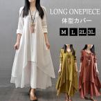 ワンピース ガーゼワンピース レディース ロングワンピース 長袖 シンプル 秋 春 ガーゼ 綿麻 おしゃれ 大きいサイズ ロング丈 マキシ丈 ワンピ 体型カバー 無地