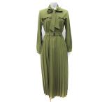 レディアゼル REDYAZEL ワンピース ロング 長袖 ボウタイ リボン プリーツ S 緑 カーキ /YI レディース