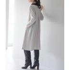 ワンピース Vネック長袖ワイドリブニットワンピース