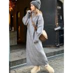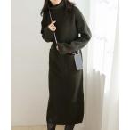 【SALE/55%OFF】andme クルーネック スリット ロング ワンピース 長袖 ニットソー ニット ワンピ アンドミー ワンピース・ドレス ワンピース ブラウン