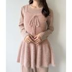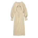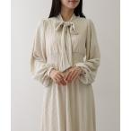ワンピース テクスチャー ボウタイ リボン シャーリング ワンピース
