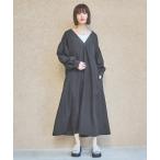 【SALE/77%OFF】clear クルミボタンVネック長袖ロングワンピース クリア ワンピース・ドレス ワンピース ブラウン グレー ベージュ