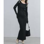 ワンピース ショルダーフリル切替ニットワンピース