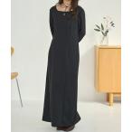 ワンピース 「アンチピリング/ウォッシャブル」ヴィンテージライク ダンボールカットソーロングスリットワンピース