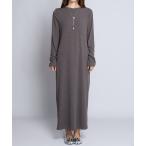 ワンピース ニットソー長袖スリット入りロング丈ワンピース