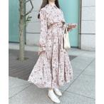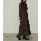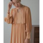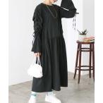 ワンピース テクスチャー ボウタイ リボン シャーリング ワンピース