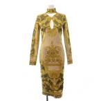 未使用品 フェンディ FENDI ヴェルサーチ 22SS FENDACE フェンダーチェ ジャージーミディドレス ワンピース ロング 長袖 38 ゴールド