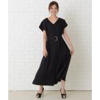 ワンピース Vネックベルト付き半袖ワンピースドレス