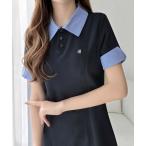 ワンピース 「mily bilet」パネルラインが描く美シルエット。ハーフスリーブポロワンピース (ロング丈)